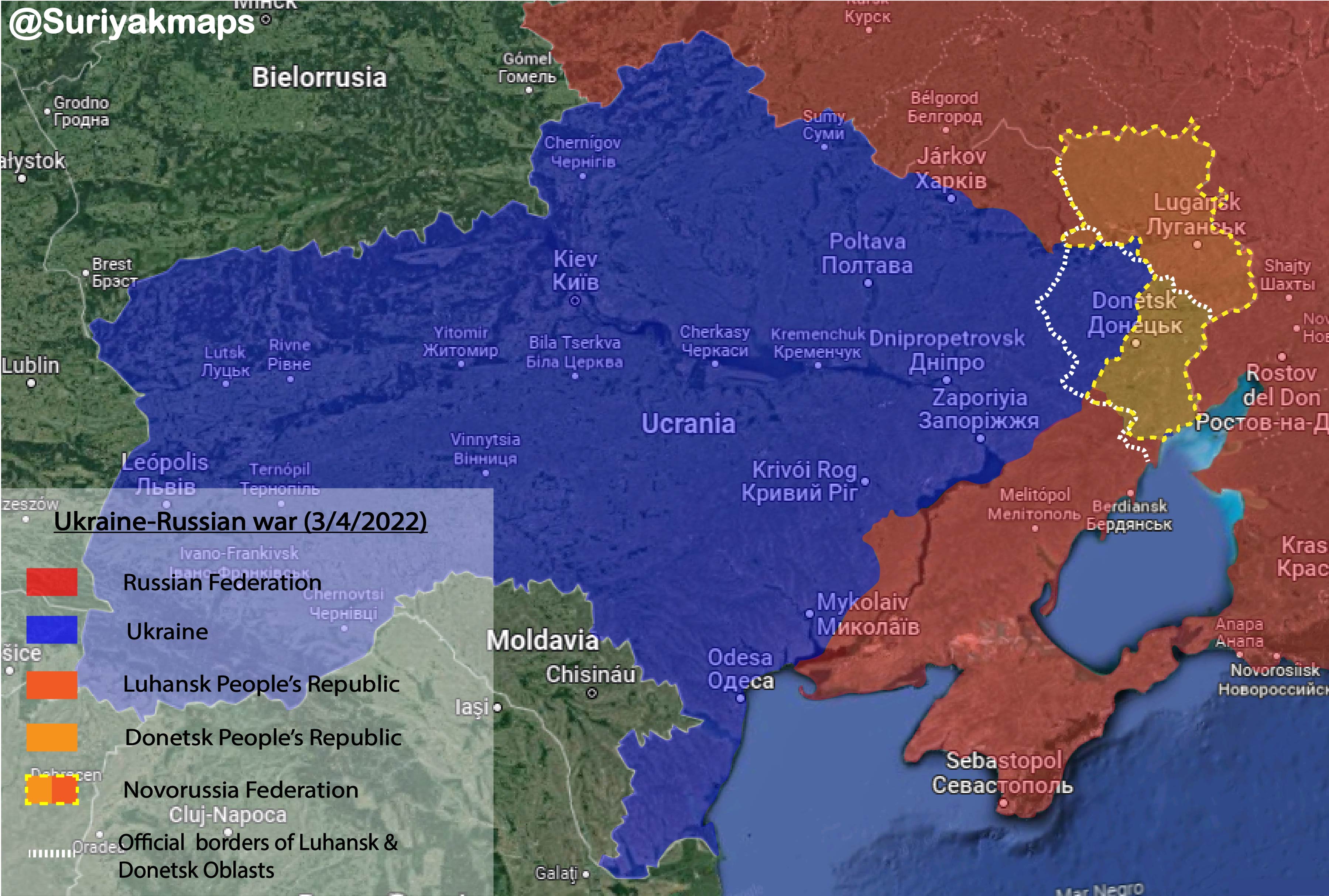 The map of “What Putin Wants”, one month into the war, is already obsolete. With the redeployment, Kiev (jointly held) is out of the question. A rump Ukraine is viable if they retain Odessa and have access to the Black Sea. When Mariupol falls in days, Russia will have control of the Sea of Azov. The Kremlin will never give that up. But on a whole, this war is a disaster for Russia. The sheen of strength and competence is gone. What remains to be determined is where the cease-fire line will be drawn and will enough of the occupied land returned so it is portrayed as a Ukrainian David standing up to the Russian Goliath.